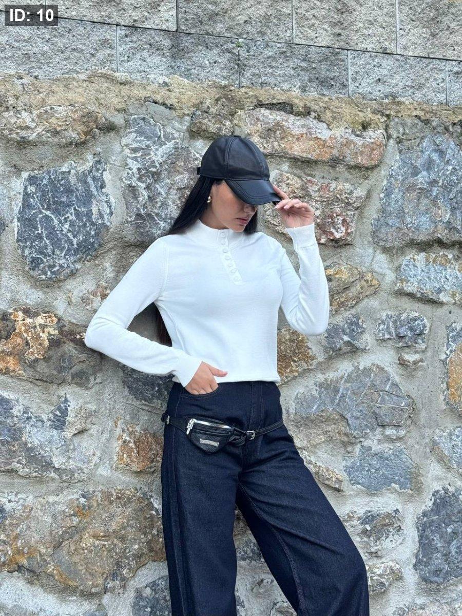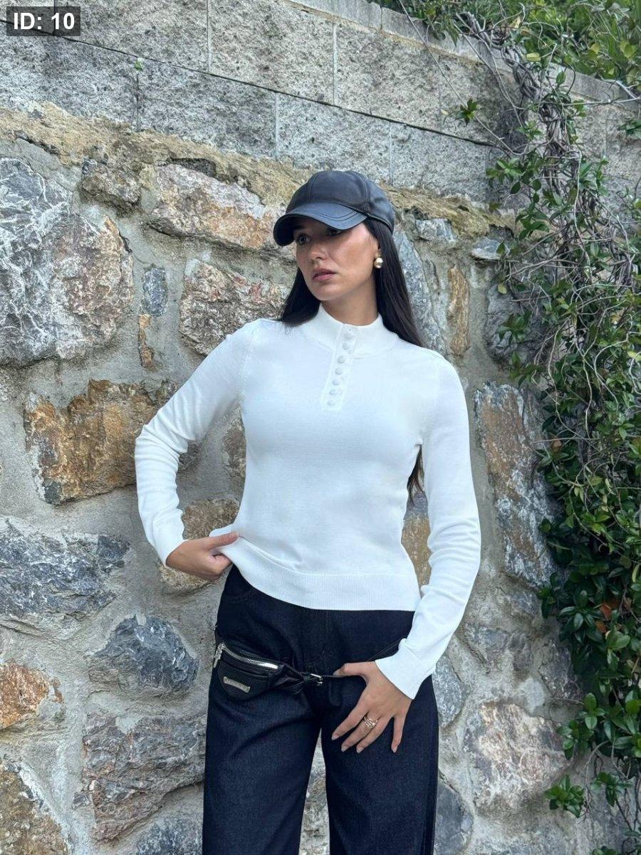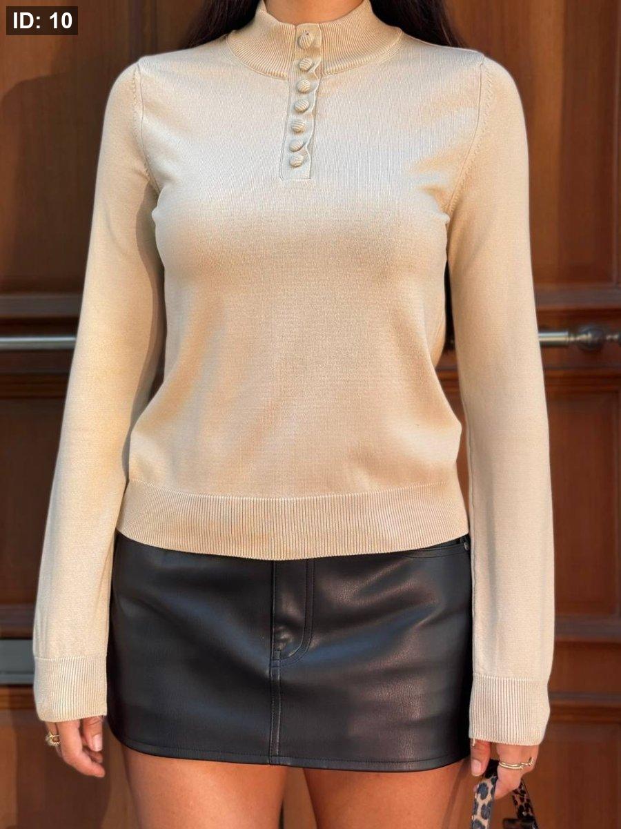 بلوز صوف ناعم ازرار + هاي نيك