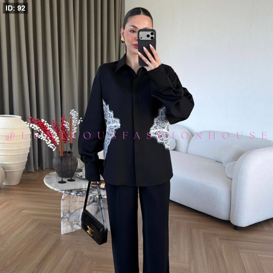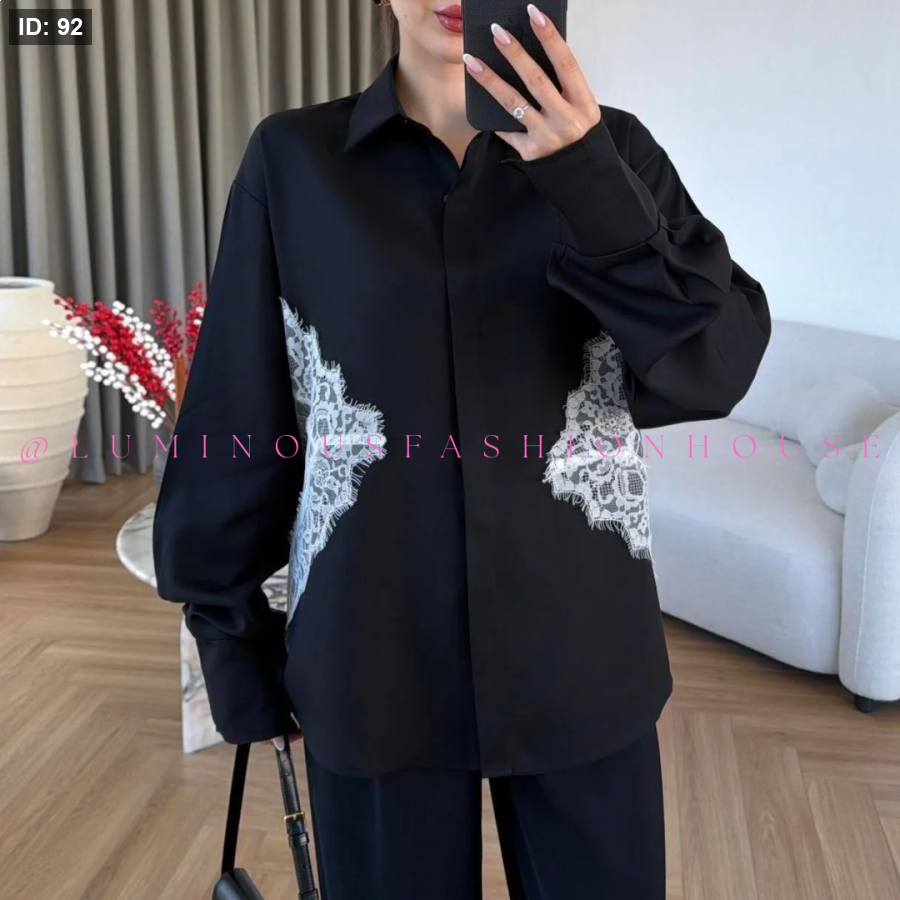 Black Shirt with Lace Detail